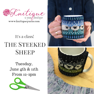Choose from a simple seed stitch border or a folded hem and let us help you get started on a fun project that's both mindless and engaging. Pick up one of our 2 color kits before we sell out, or let us help you pair together two contrasting colors of fingering weight yarn. Class is just $5! Be sure to sign up before we fill up; just stop by the boutique or click here.